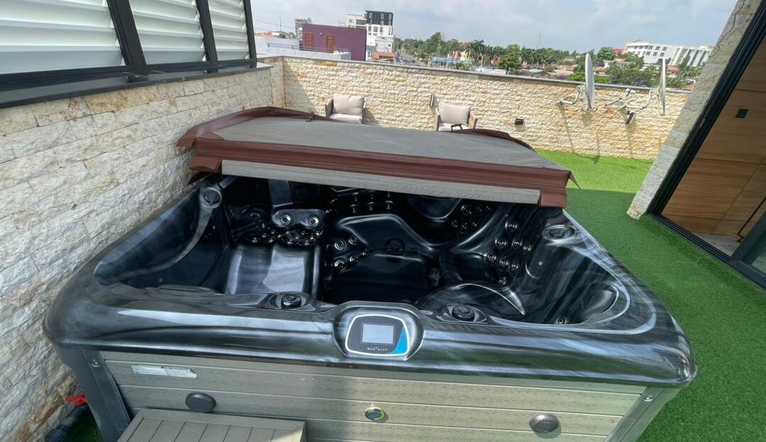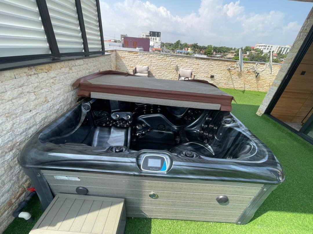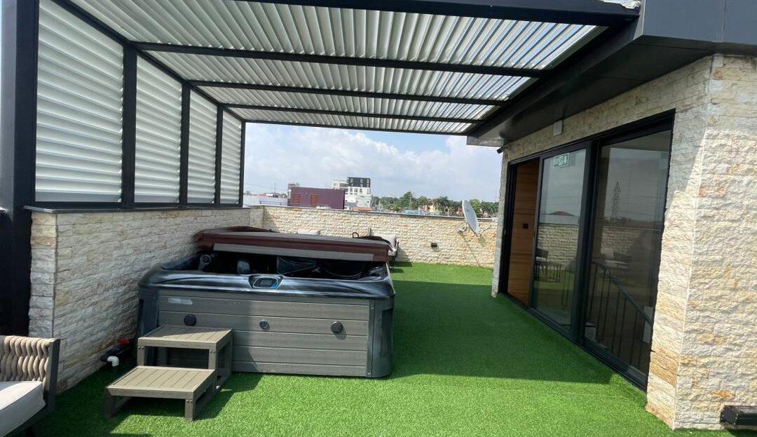 It has got 24-hour security and power supply, Ample safe parking space, a few neighbours, a semi-indoor swimming pool, high-speed internet, an ensuite bedroom, a separate guest toilet, a balcony.