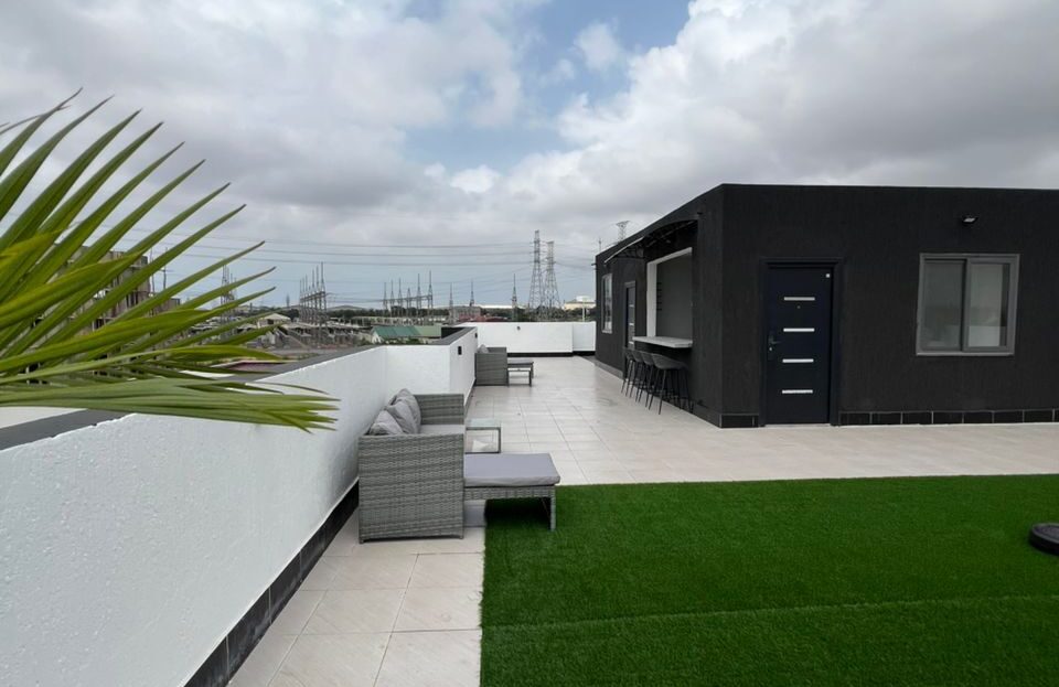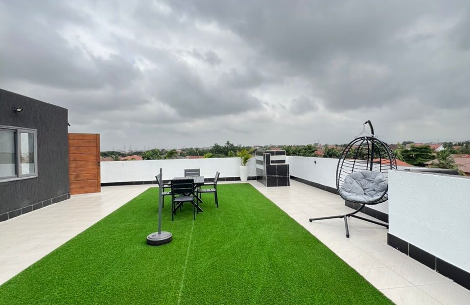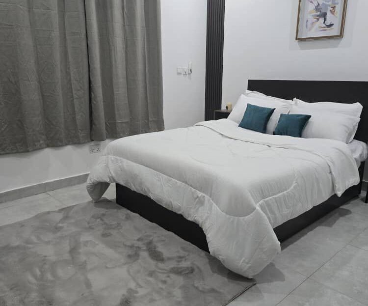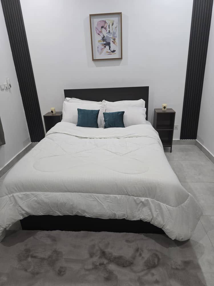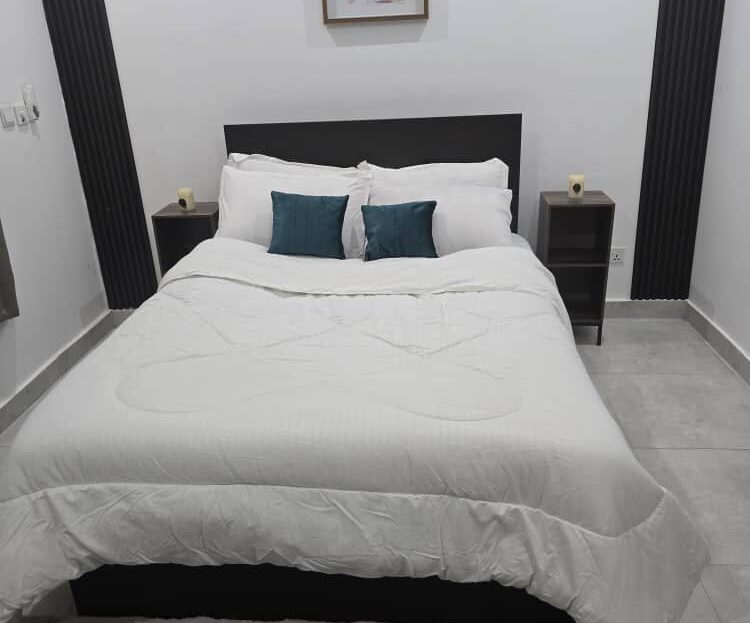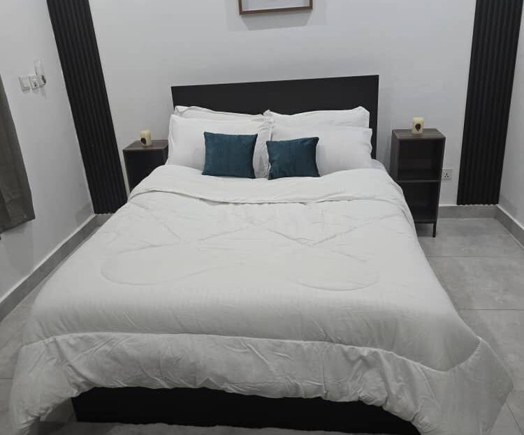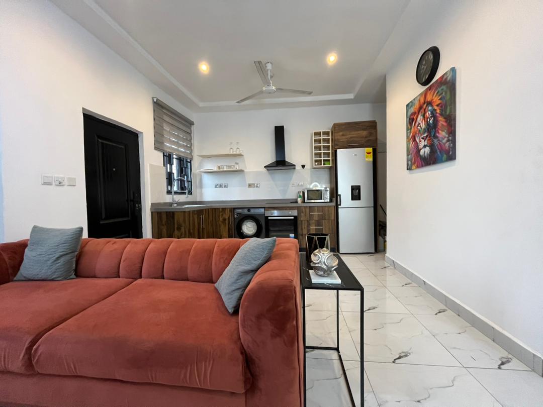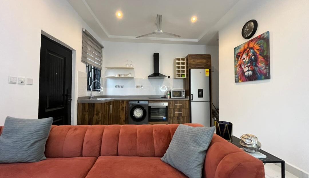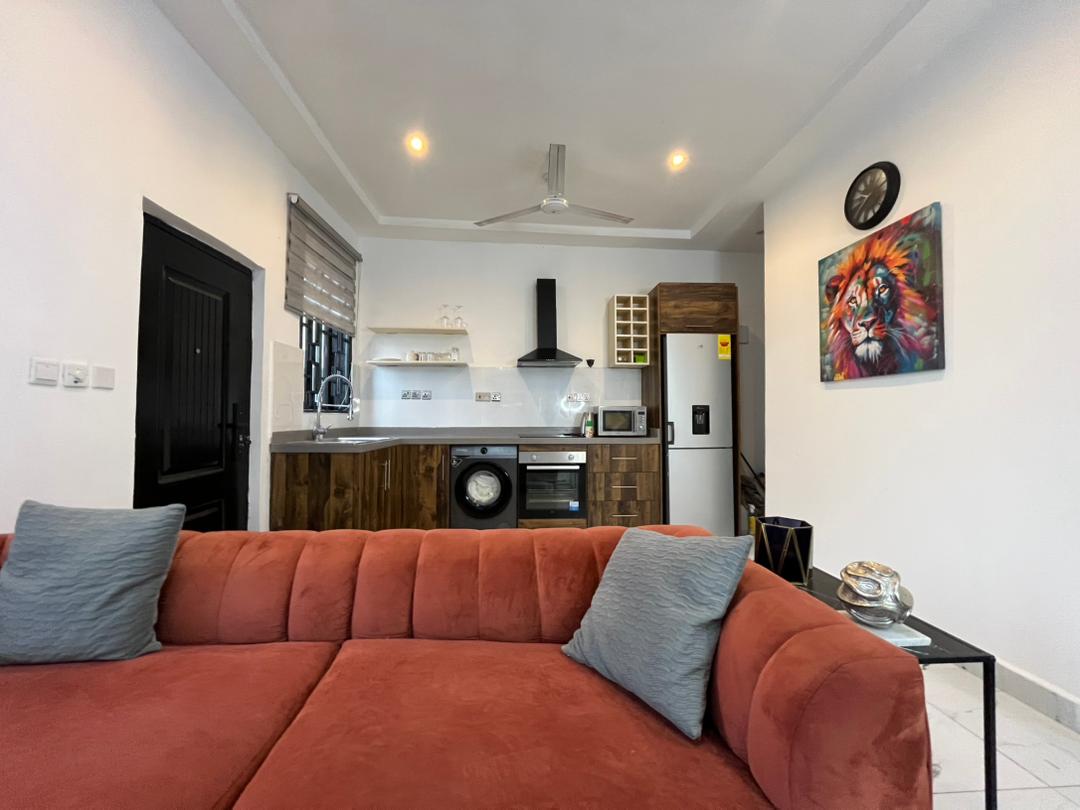 Enjoy a warm stay at this spacious one-bed apartment in East Legon, Accra. It’s perfect for those seeking a moderate place to stay without breaking the bank. The area is quite central, with retail stores and a market a few blocks away. It’s got a standby generator. Call for your booking.