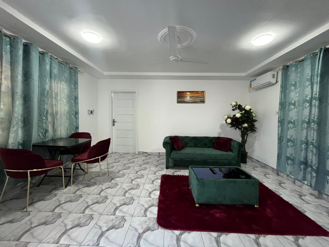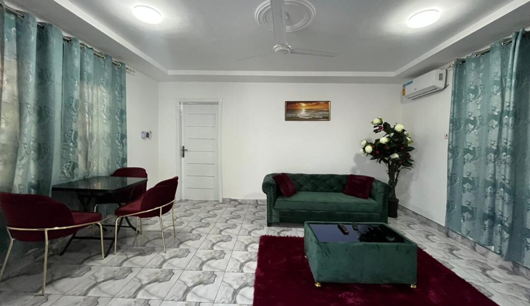 Enjoy a warm stay at this spacious one-bed apartment in East Legon, Ogbojo. It’s perfect for those seeking a moderate place to stay without breaking the bank. The area is quite central, with retail stores and a market a few blocks away. It’s got a standby generator. Call for your booking.