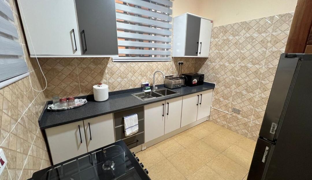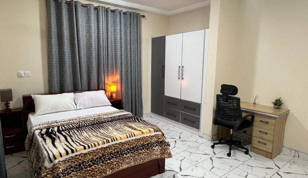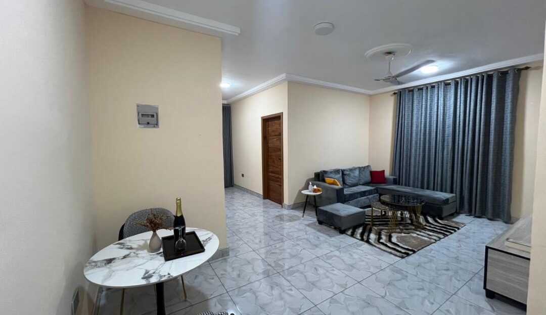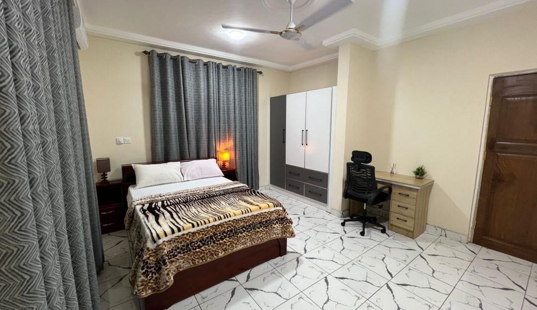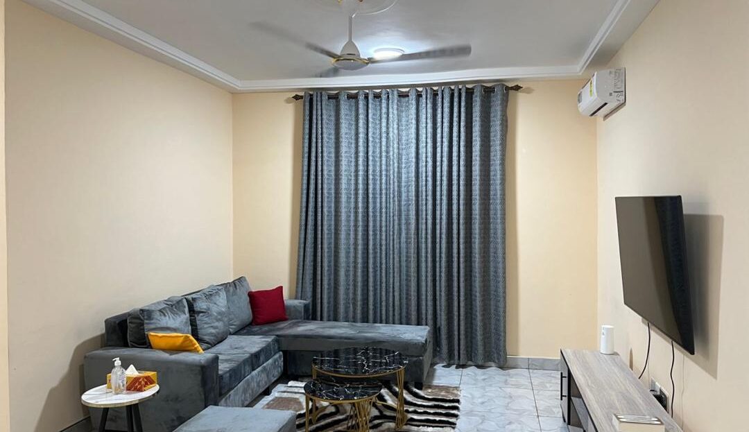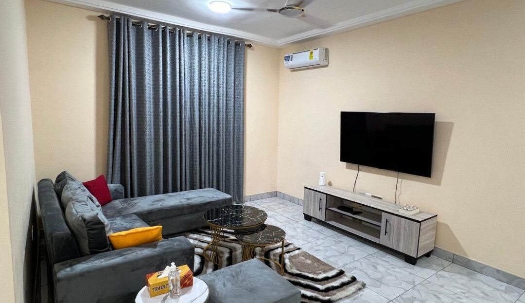 Enjoy a warm stay at this spacious one-bed apartment in East Legon, Accra. It’s perfect for those seeking a moderate place to stay without breaking the bank. The area is quite central, with retail stores and a market a few blocks away. It’s got a standby generator. Call for your booking.