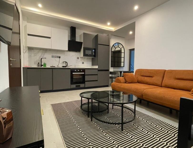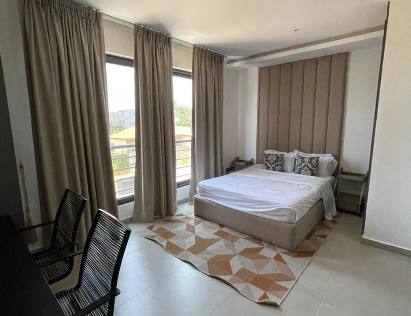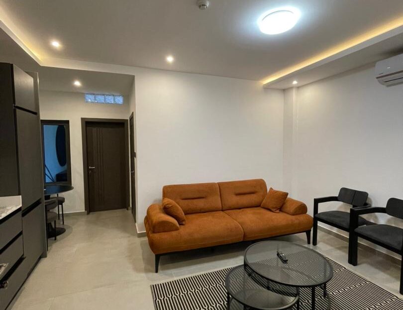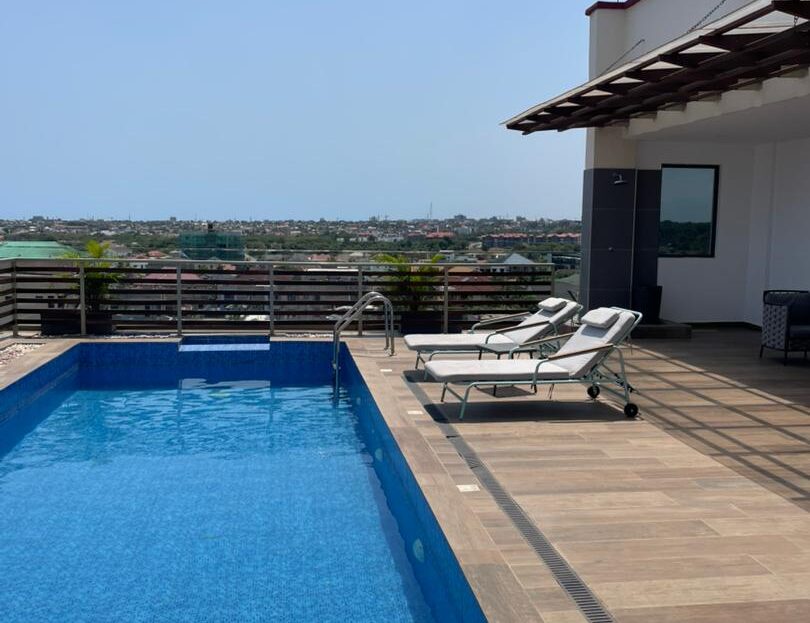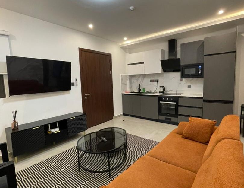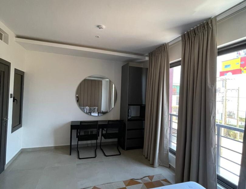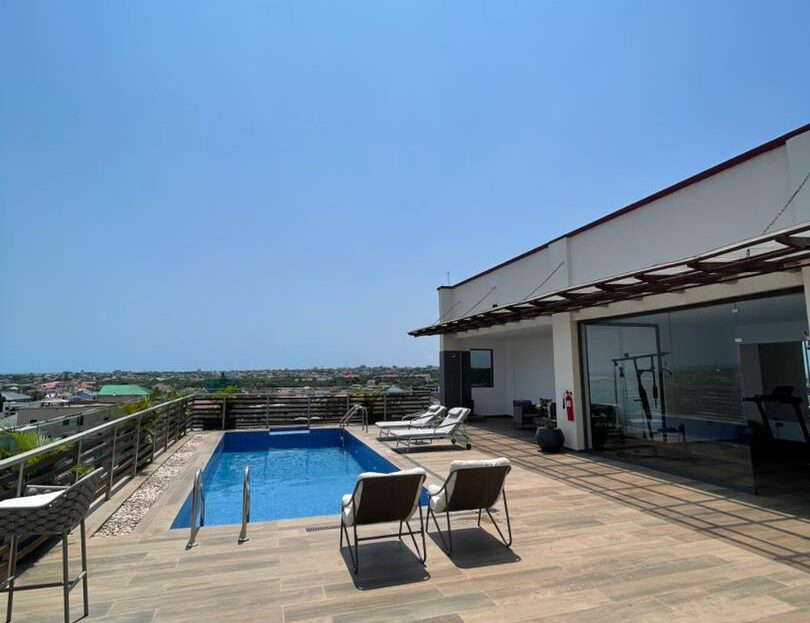 This is a one bed fully furnished apartment in Tse Addo. This apartment is fully set up with modern appliances. It’s features include; Fully furnished kitchen ,close to the main road ,swimming Pool, Gym and security service.