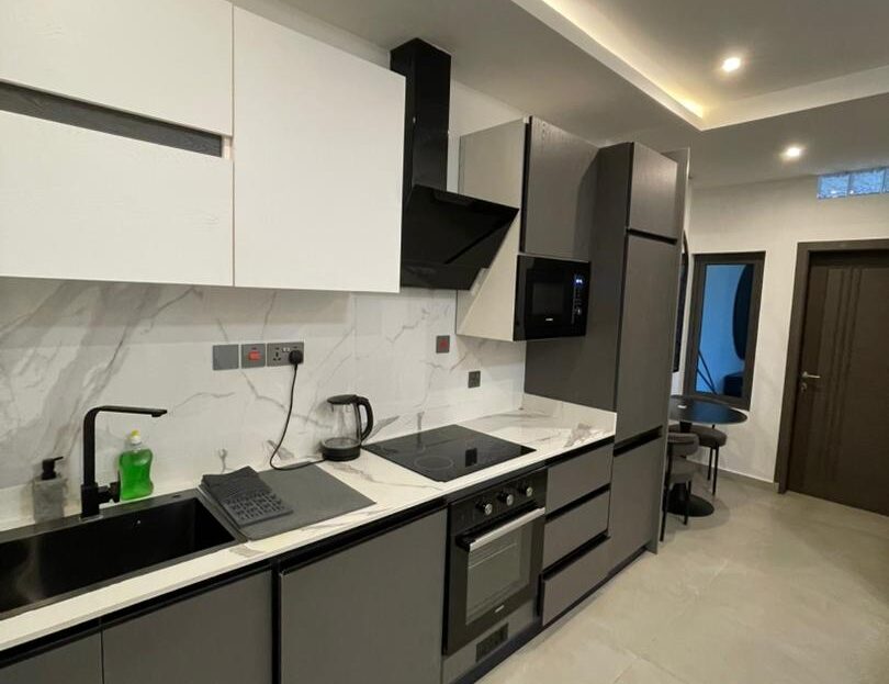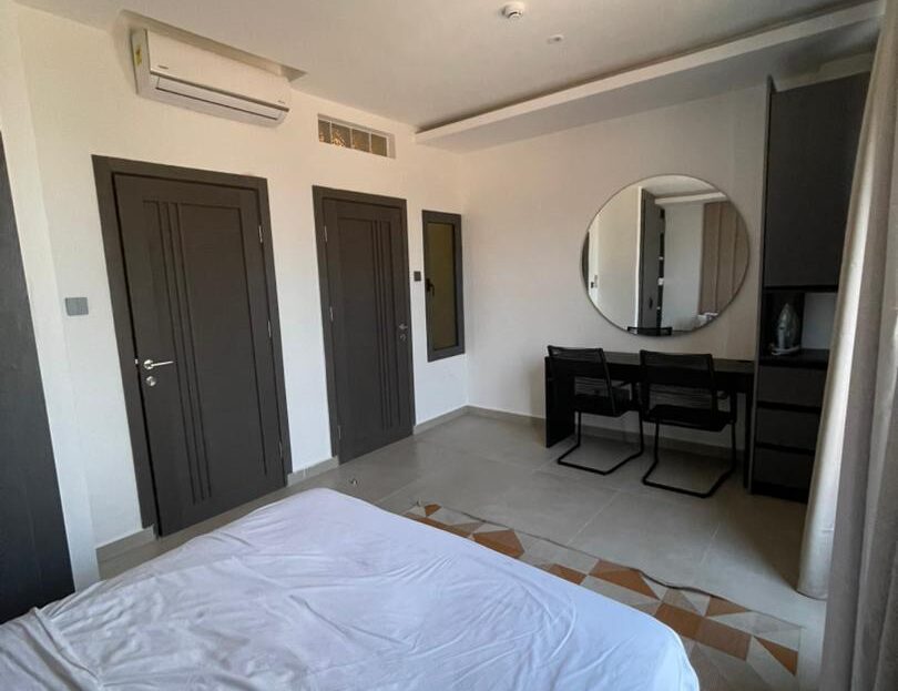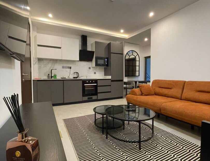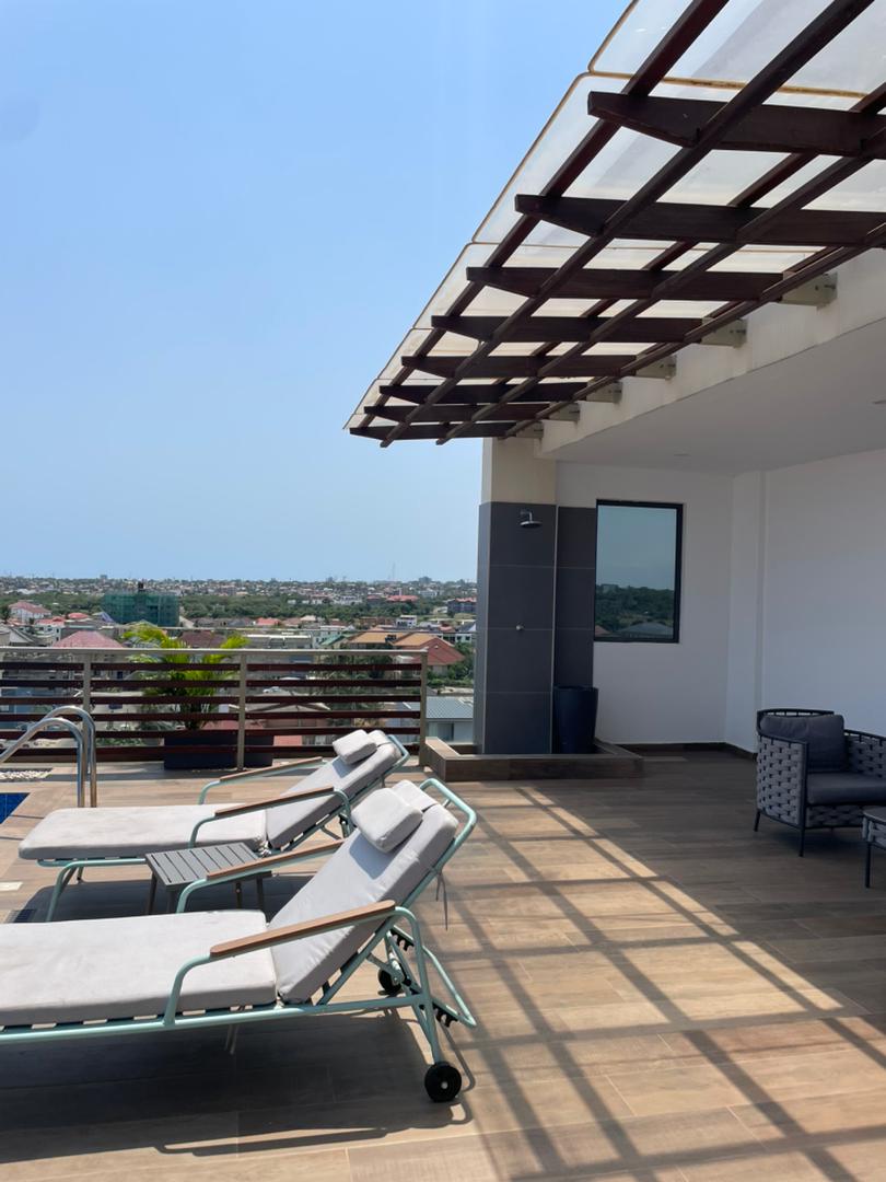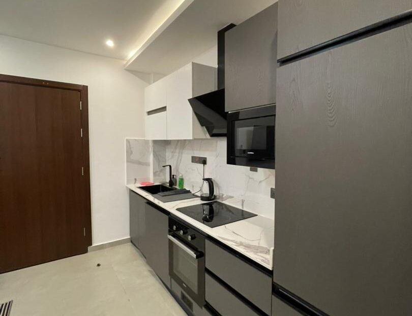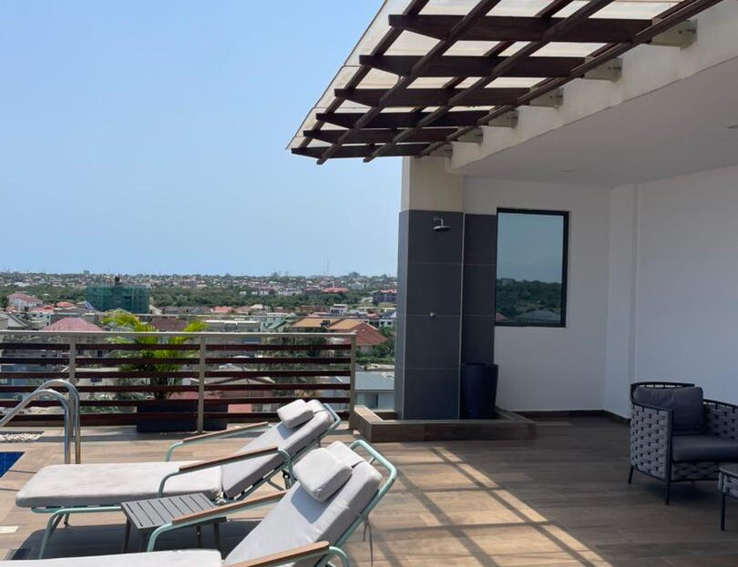 This is a one bed fully furnished apartment in Tse Addo. This apartment is fully set up with modern appliances. It’s features include; Fully furnished kitchen ,close to the main road ,swimming Pool, Gym and security service.