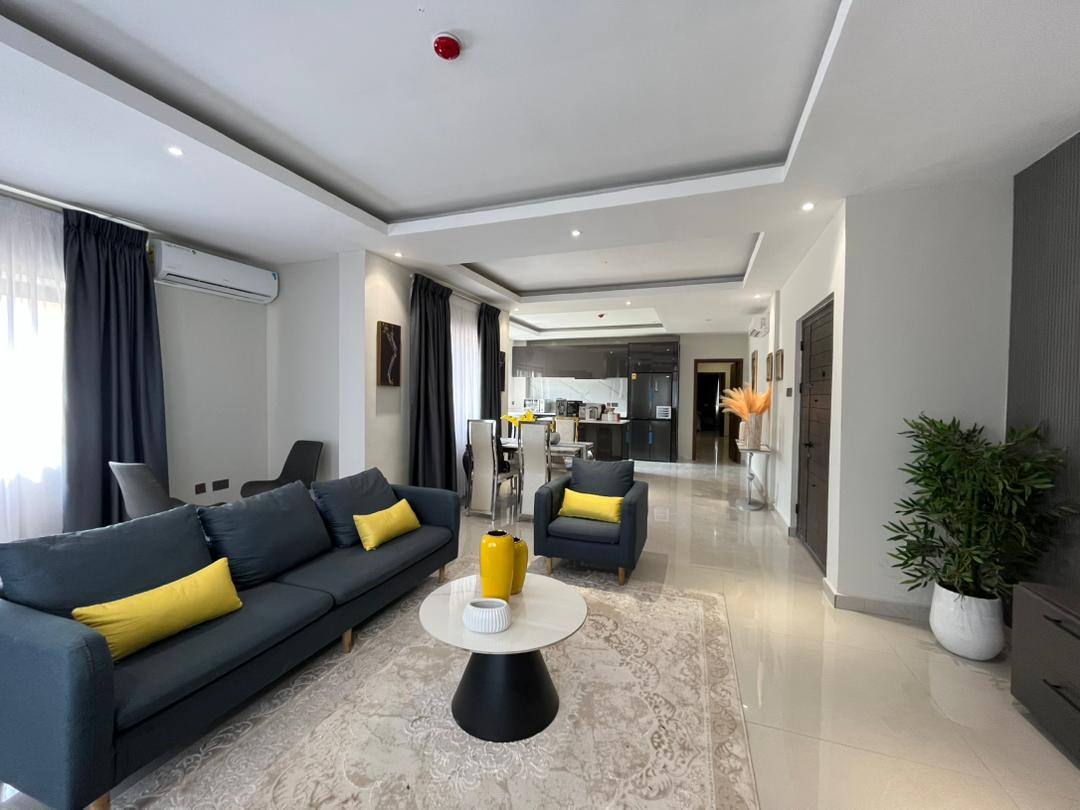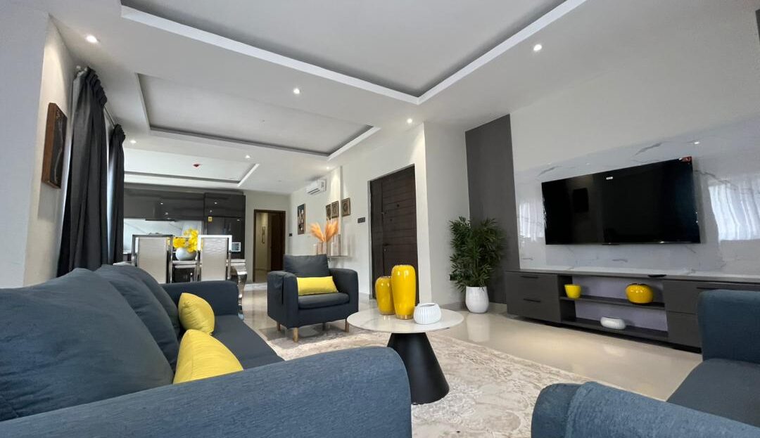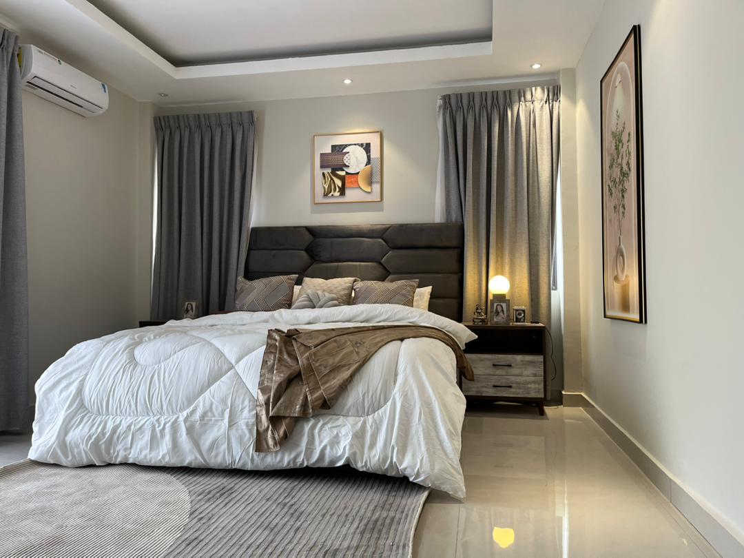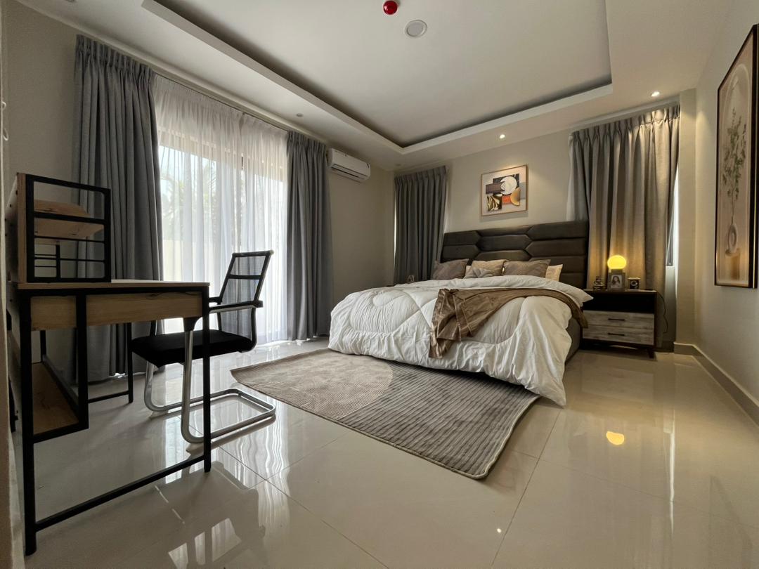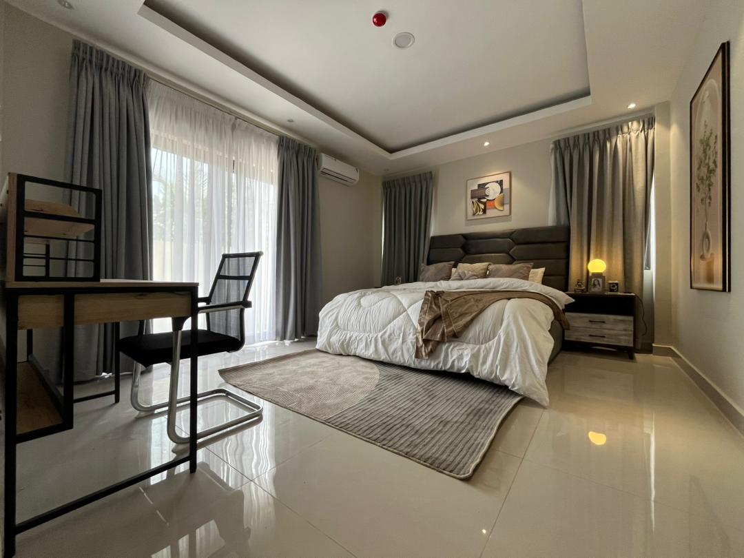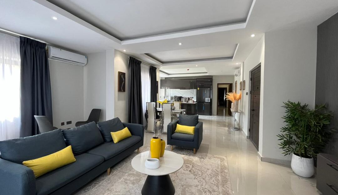 This is a 2-bedroom apartment in East Legon around Lagos Avenue. It is fully furnished and equipped with modern amenities for comfortable living. The apartment features: – 2 spacious bedrooms with built-in wardrobes – 2 modern bathrooms – Living room with large windows for natural light – Fully equipped kitchen with refrigerator, stove, microwave, and dishwasher – 24/7 electricity and water supply – Ample parking space – Amenities include: – Air conditioning units in every room – Ceiling fans for additional comfort – Cable TV . The apartment also comes with 24/7 security.