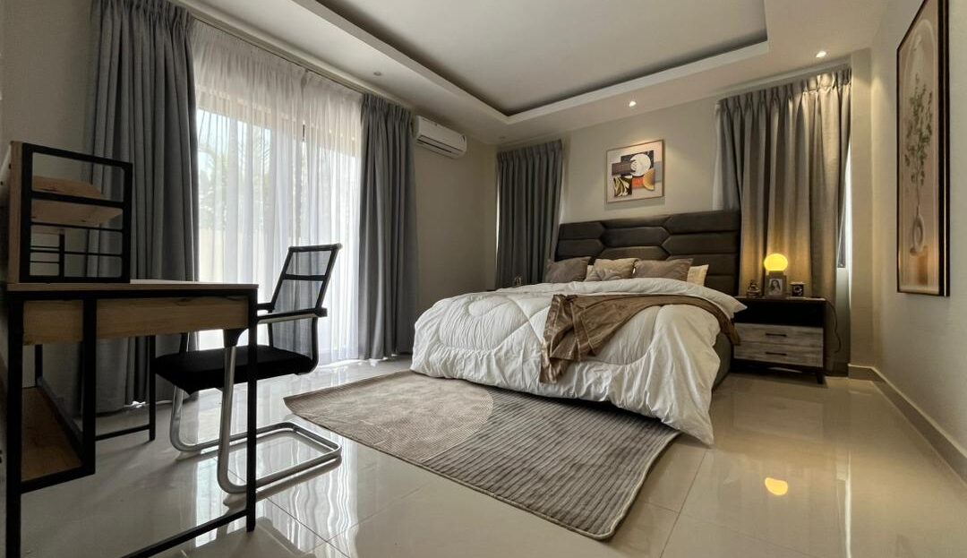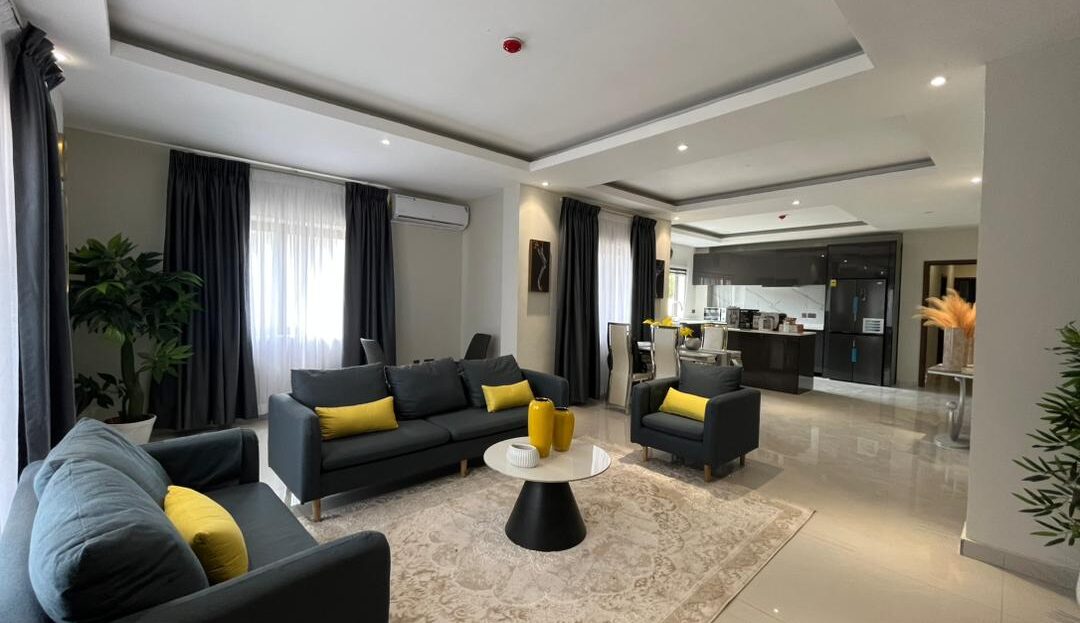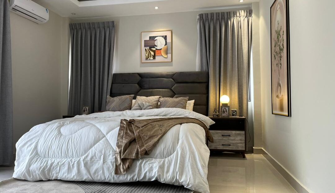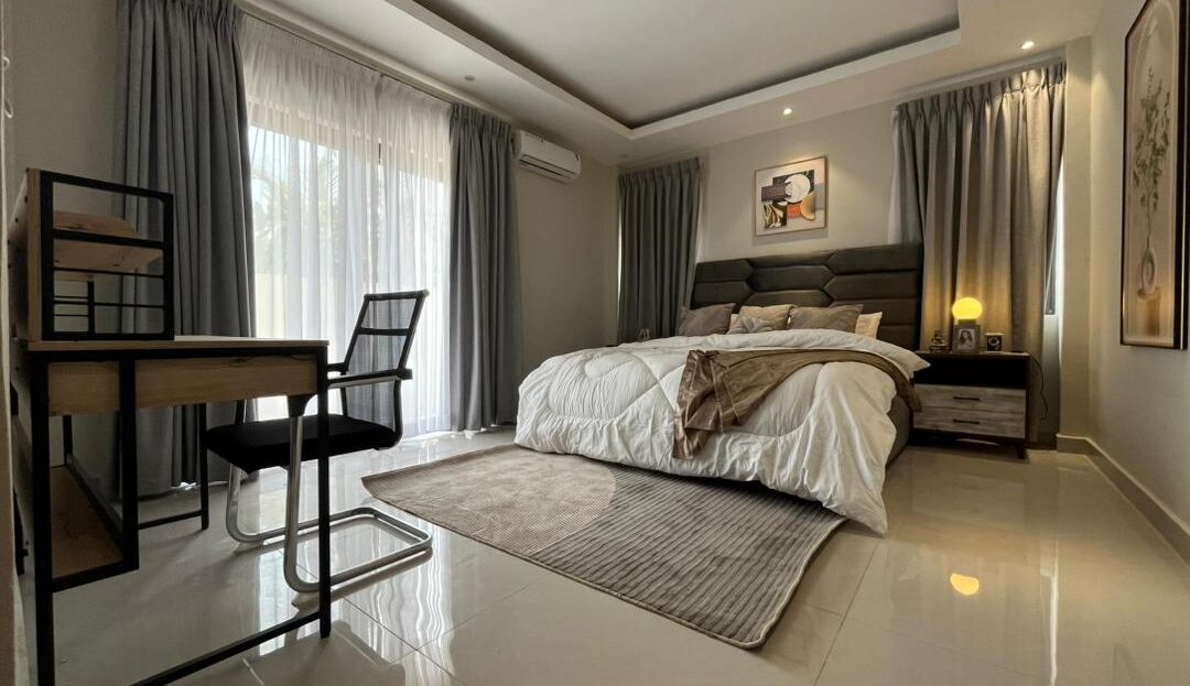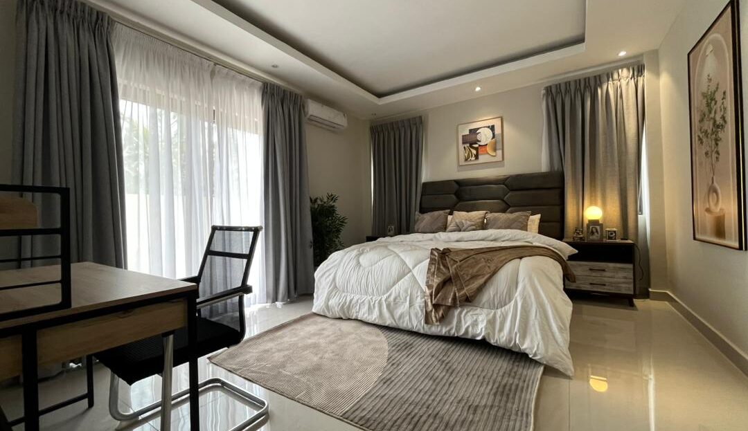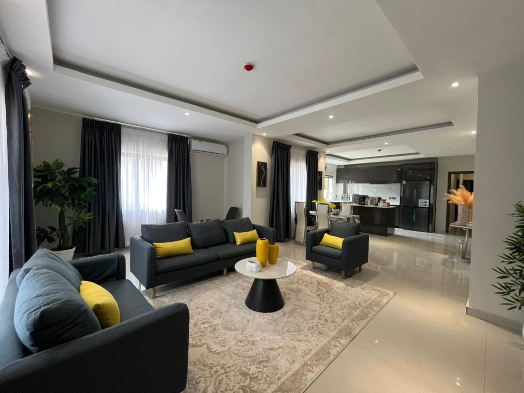 This is a 2-bedroom apartment in East Legon around Lagos Avenue. It is fully furnished and equipped with modern amenities for comfortable living. The apartment features: – 2 spacious bedrooms with built-in wardrobes – 2 modern bathrooms – Living room with large windows for natural light – Fully equipped kitchen with refrigerator, stove, microwave, and dishwasher – 24/7 electricity and water supply – Ample parking space – Amenities include: – Air conditioning units in every room – Ceiling fans for additional comfort – Cable TV . The apartment also comes with 24/7 security.
