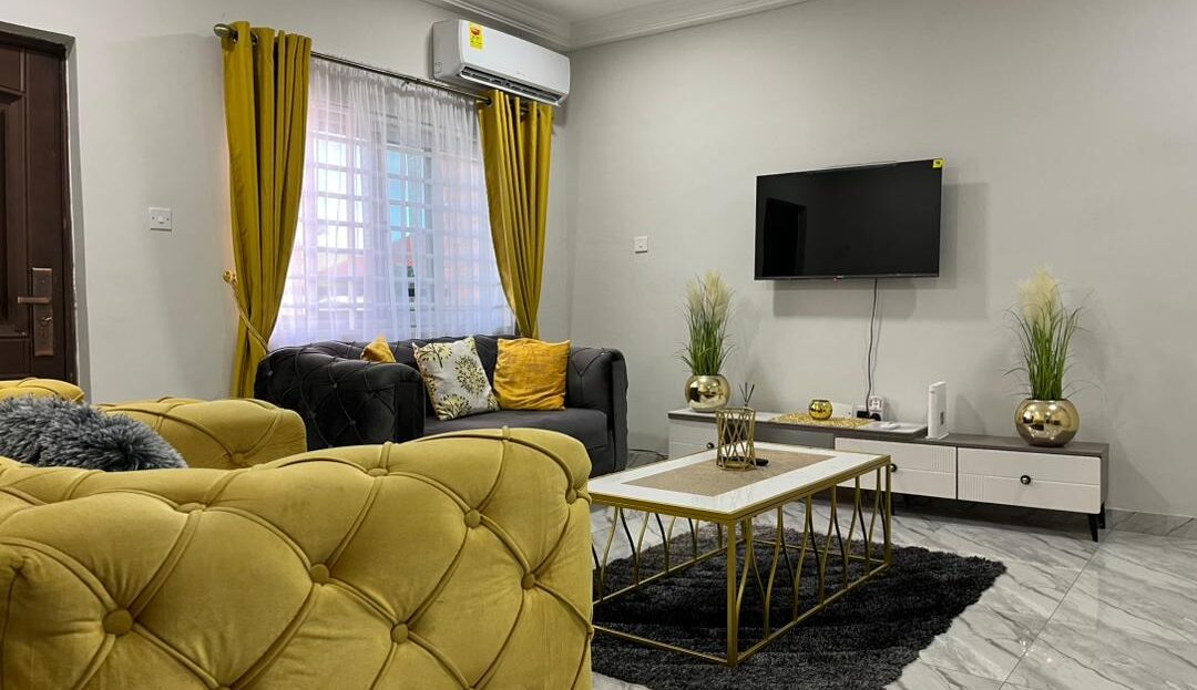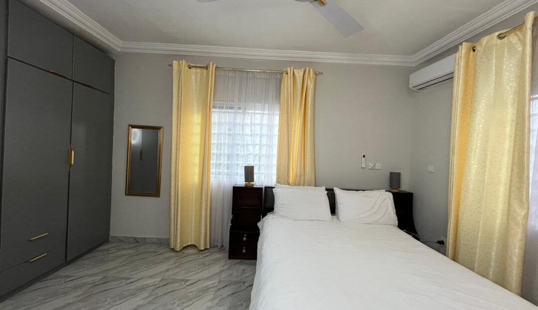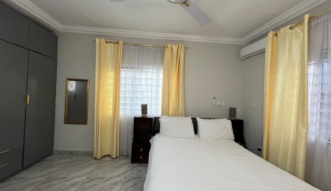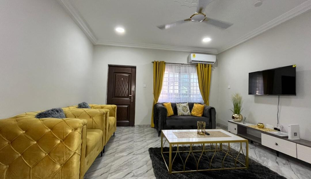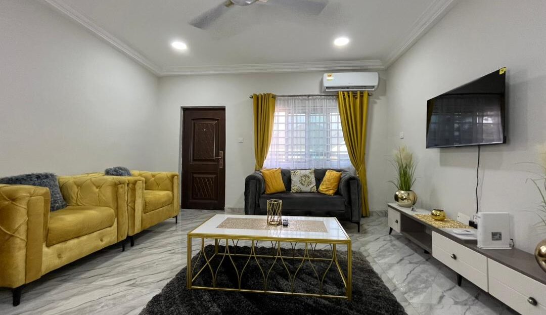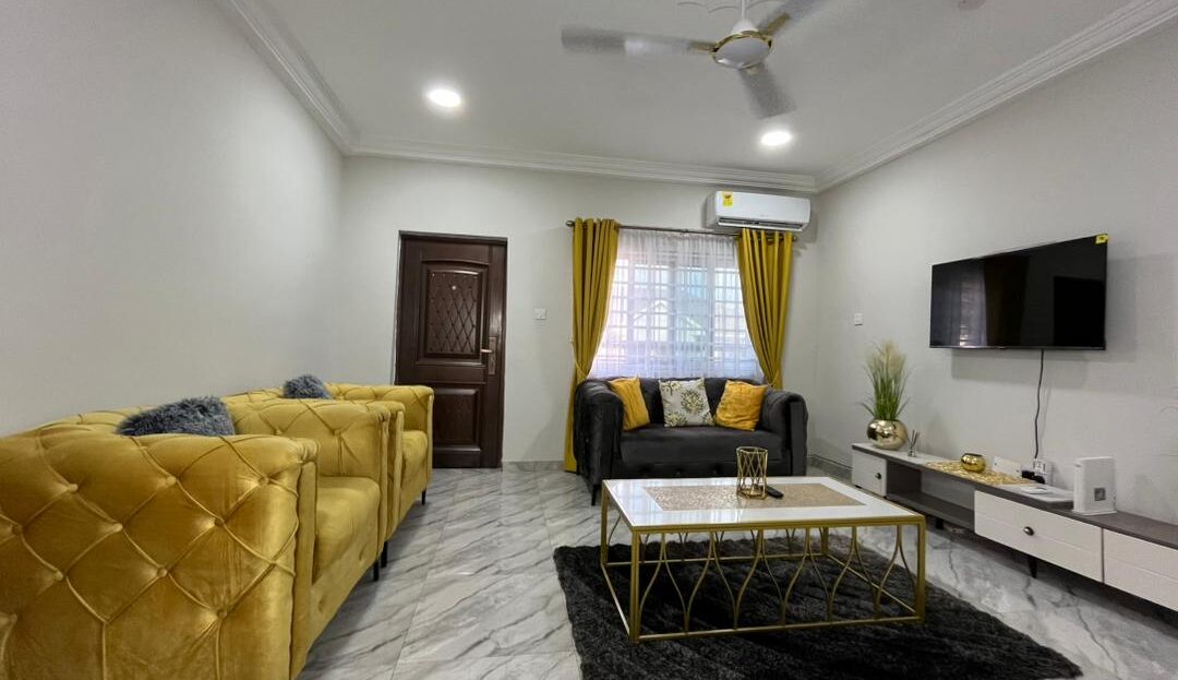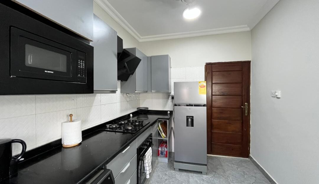 Here is a 2 Bedroom house for rent in Tse Addo. It features a modern design and a stylish living experience. The apartment boasts spacious rooms, perfect for a comfortable and relaxing lifestyle. The kitchen is fully furnished with modern appliances, and the bedrooms are cozy and peaceful, offering a tranquil retreat after a long day. Plus, the location provides convenient access to major roads and nearby amenities. Some features include: – Spacious bedrooms with ample natural light and ventilation – A fully furnished kitchen with modern appliances – A spacious balcony to hold mini gatherings- A serene neighborhood with a peaceful atmosphere.