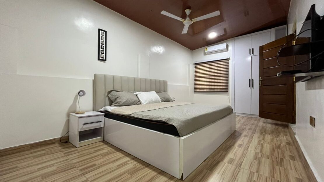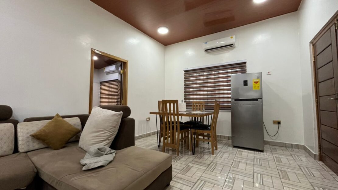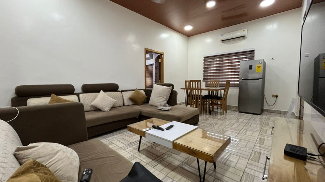 This is a two-bed, fully furnished apartment in Osu. This apartment is fully set up with modern appliances. The area is quite central, with retail stores and a market a few blocks away. This home has a good number of amenities and appliances to make your stay a comfortable one. Why not book yours today?