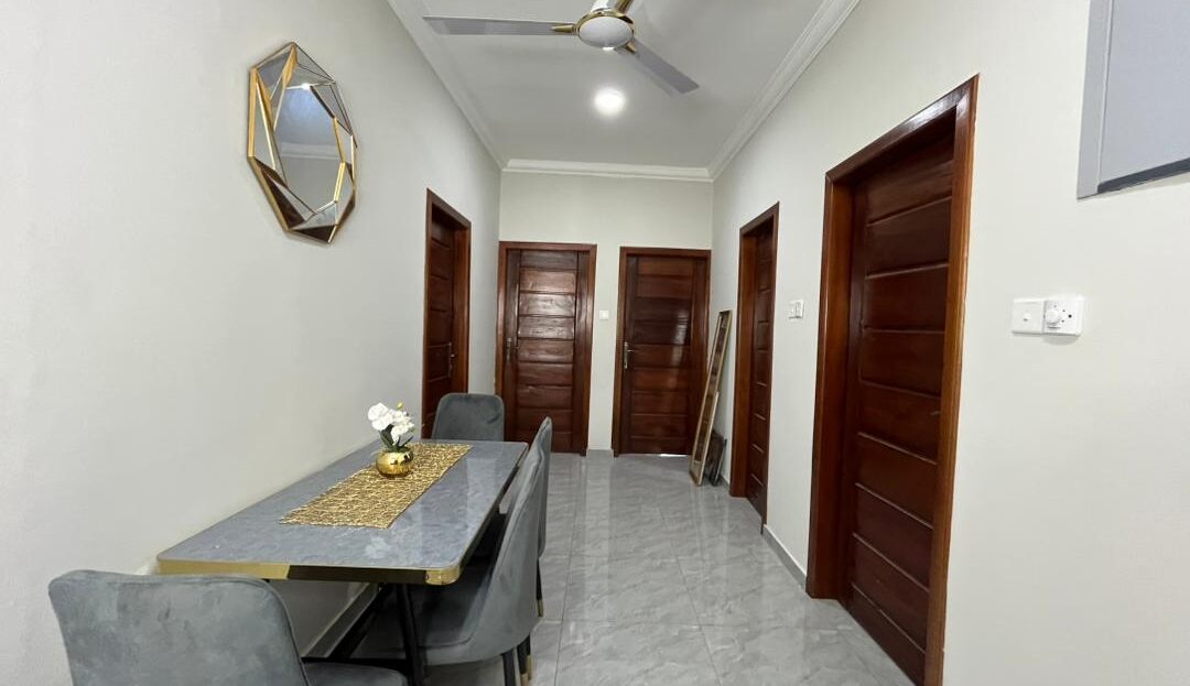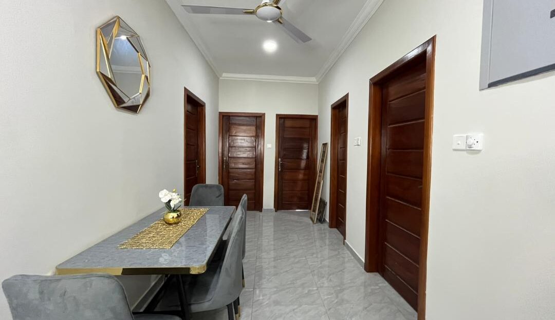Here is a 3 Bedroom house for rent in Tse Addo. It features a modern design and a stylish living experience. The apartment boasts spacious rooms, perfect for a comfortable and relaxing lifestyle. The kitchen is fully furnished with modern appliances, and the bedrooms are cozy and peaceful, offering a tranquil retreat after a long day. Plus, the location provides convenient access to major roads and nearby amenities. Some features include: – Spacious bedrooms with ample natural light and ventilation – A fully furnished kitchen with modern appliances – A serene neighborhood with a peaceful atmosphere.