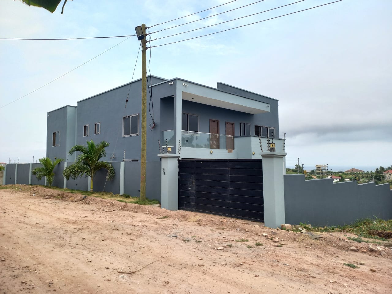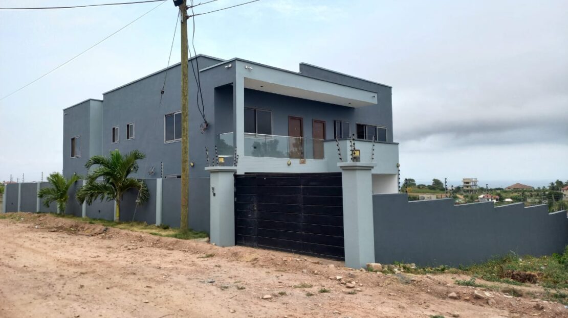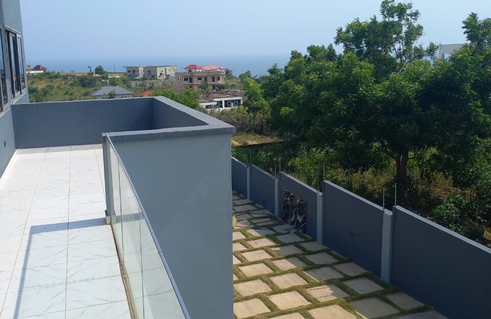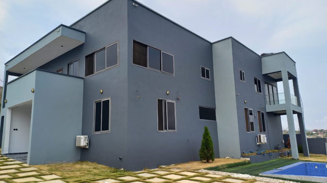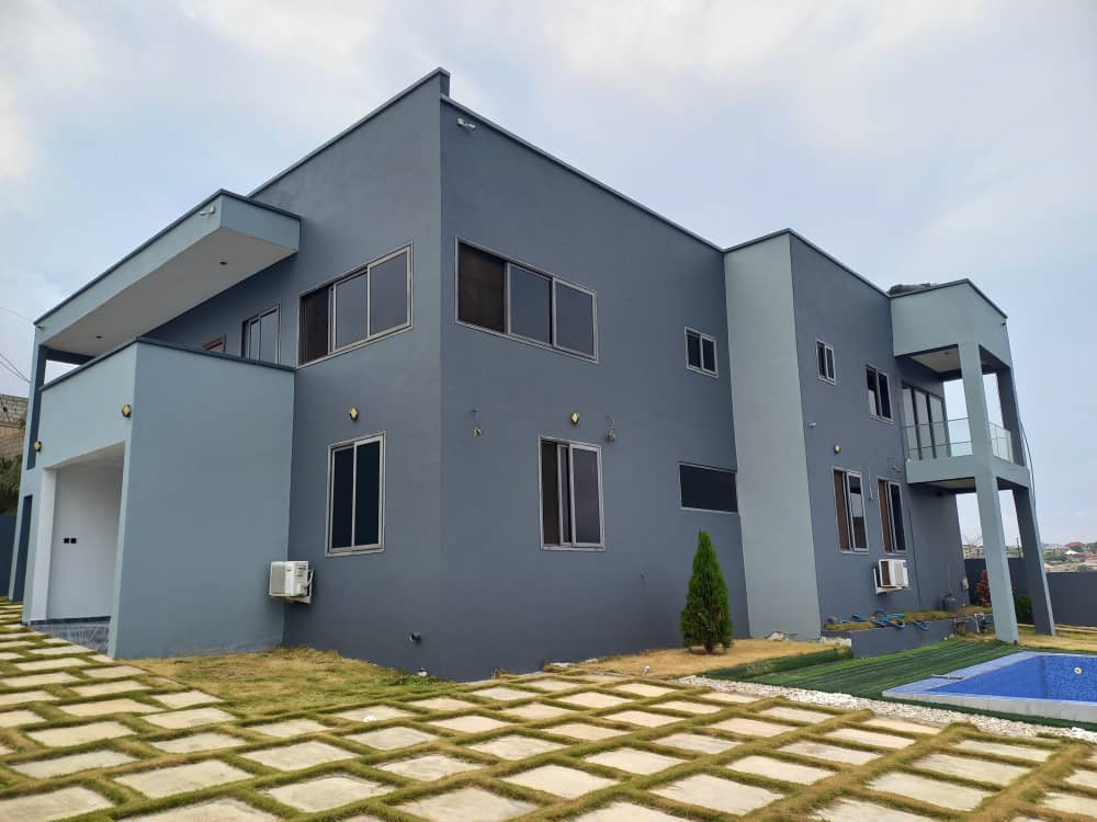This 6 bedroom self compound at Kokrobite, is for sale. It is located in a serene neighbourhood with good road networks, and also easily accessible. Kokrobite Hills with very nice views to the beach and views to the city. Very nice homes built in the neighborhood (2 mansions) .1 minute walk to booth. This 6 bedroom house comes with a swimming pool ,roughly 36** sqft ,AC unit in each room ,Electric Security fence ,Camera system .Solar panels for lights in case of power outage.